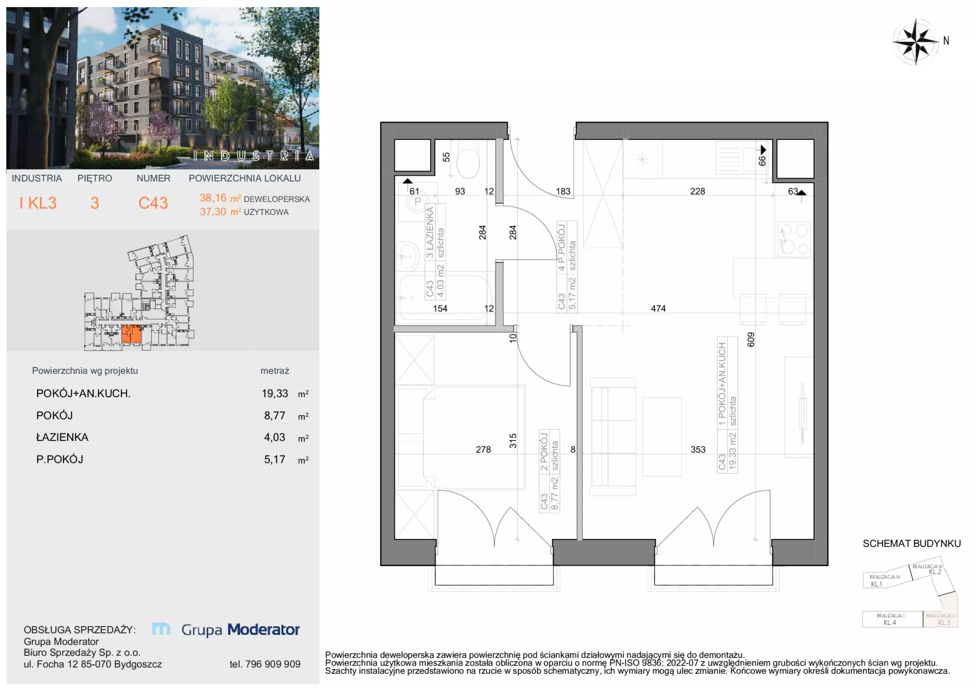 Udogodnienia: Osiedle Industria to loftowy desing, panele fotowoltaiczne, wygoda, bliskość komunikacji miejskiej (pętla tramwajowa i autobusowa), usług i handlu. W pobliżu mieszczą się także placówki edukacyjne. Na osiedlu znajdzie się wspólna przestrzeń rekreacyjna w tym plac zabaw, miejsce dla rowerów i mini warsztat. Przynależności: Mieszkania będą posiadać własne ogródki, tarasy lub balkony. Bezpieczeństwo: Domofon, System Smart Home, monitoring osiedla. Wielkość Projektu: W pierwszym etapie inwestycji powstanie 5 pięciopiętrowych budynków wielorodzinnych, znajdować się w nich będą 89 lokale mieszkalne oraz lokale użytkowe. Garaże: W inwestycji dostępna będzie podziemna hala garażowa. Komunikacja: Pętla komunikacyjna - Tramwaj 85 metrów, Autobus 100 metrów. Dworzec PKP Bydgoszcz Główna 400m. Odległość od Centrum: 2,4 km. Szczegóły: Bawialnia, siłownia, balkony i tarasy wykończone płytkami i gniazdkami elektrycznymi, cichobieżne windy. Panoramiczne okna. Automat do czyszczenia butów. Dyfuzory zapachu w częściach wspólnych. Zielone dziedzińce.