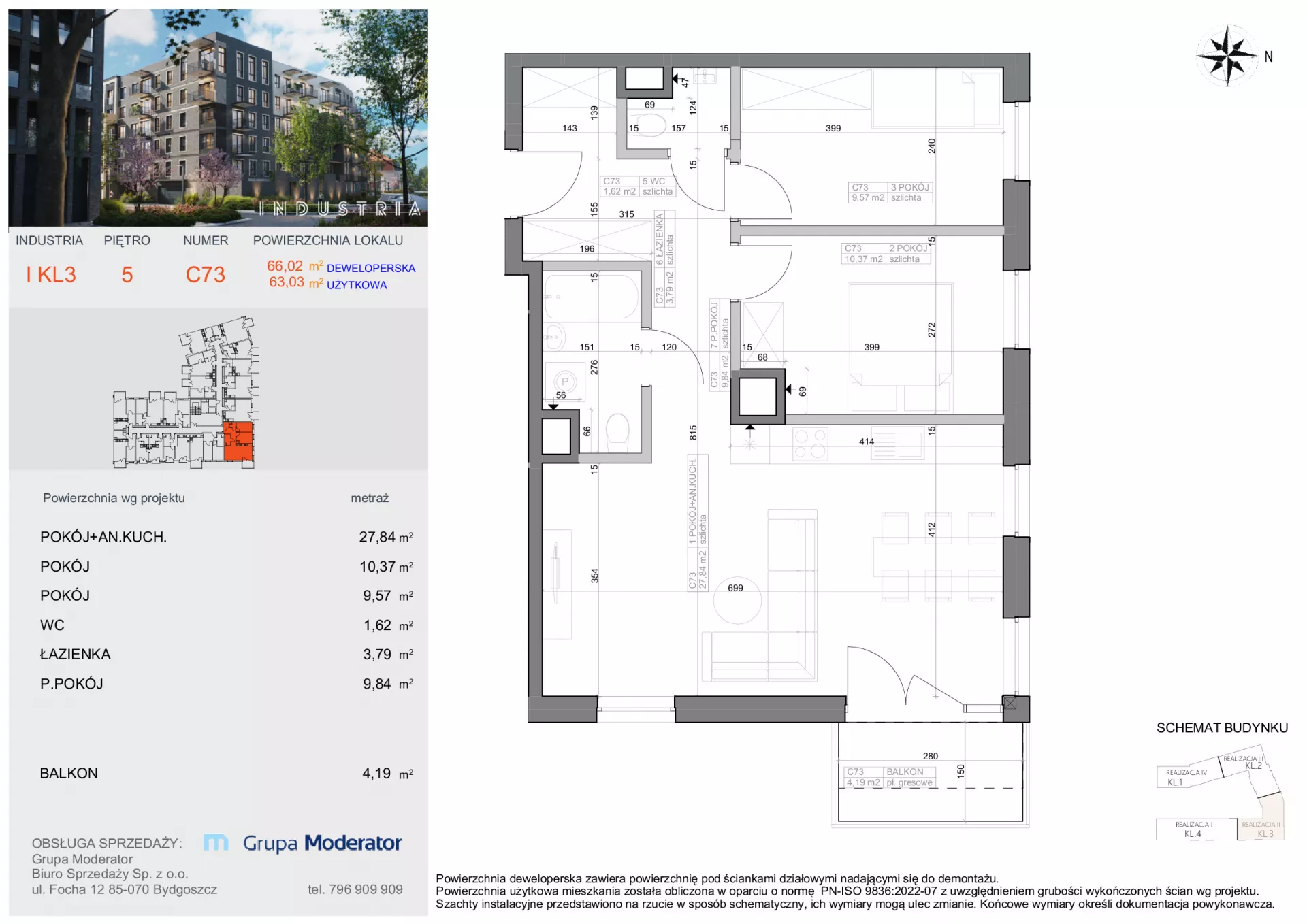 Udogodnienia: Osiedle Industria to loftowy desing, panele fotowoltaiczne, wygoda, bliskość komunikacji miejskiej (pętla tramwajowa i autobusowa), usług i handlu. W pobliżu mieszczą się także placówki edukacyjne. Na osiedlu znajdzie się wspólna przestrzeń rekreacyjna w tym plac zabaw, miejsce dla rowerów i mini warsztat. Przynależności: Mieszkania będą posiadać własne ogródki, tarasy lub balkony. Bezpieczeństwo: Domofon, System Smart Home, monitoring osiedla. Wielkość Projektu: W pierwszym etapie inwestycji powstanie 5 pięciopiętrowych budynków wielorodzinnych, znajdować się w nich będą 89 lokale mieszkalne oraz lokale użytkowe. Garaże: W inwestycji dostępna będzie podziemna hala garażowa. Komunikacja: Pętla komunikacyjna - Tramwaj 85 metrów, Autobus 100 metrów. Dworzec PKP Bydgoszcz Główna 400m. Odległość od Centrum: 2,4 km. Szczegóły: Bawialnia, siłownia, balkony i tarasy wykończone płytkami i gniazdkami elektrycznymi, cichobieżne windy. Panoramiczne okna. Automat do czyszczenia butów. Dyfuzory zapachu w częściach wspólnych. Zielone dziedzińce.