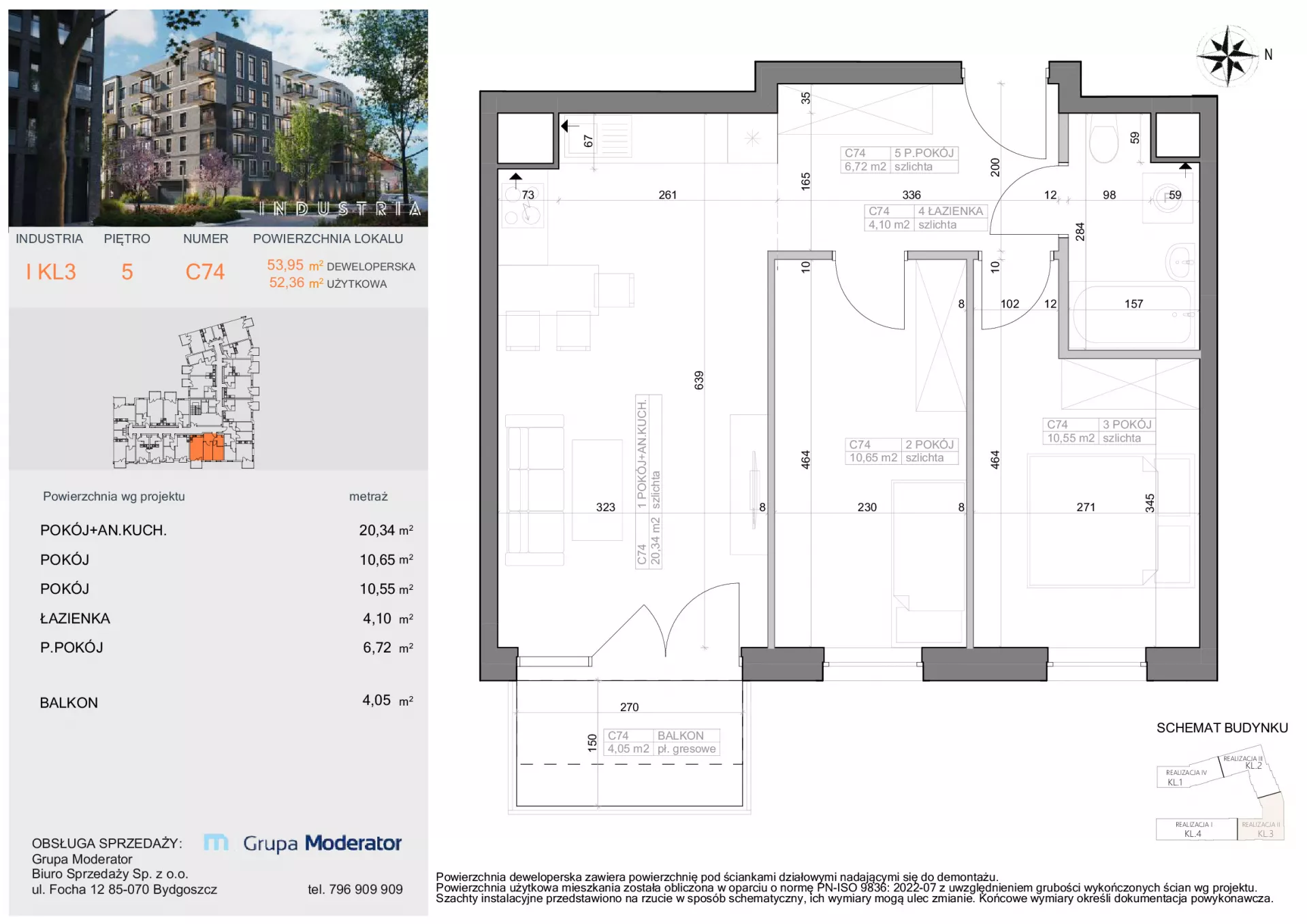 Udogodnienia: Osiedle Industria to loftowy desing, panele fotowoltaiczne, wygoda, bliskość komunikacji miejskiej (pętla tramwajowa i autobusowa), usług i handlu. W pobliżu mieszczą się także placówki edukacyjne. Na osiedlu znajdzie się wspólna przestrzeń rekreacyjna w tym plac zabaw, miejsce dla rowerów i mini warsztat. Przynależności: Mieszkania będą posiadać własne ogródki, tarasy lub balkony. Bezpieczeństwo: Domofon, System Smart Home, monitoring osiedla. Wielkość Projektu: W pierwszym etapie inwestycji powstanie 5 pięciopiętrowych budynków wielorodzinnych, znajdować się w nich będą 89 lokale mieszkalne oraz lokale użytkowe. Garaże: W inwestycji dostępna będzie podziemna hala garażowa. Komunikacja: Pętla komunikacyjna - Tramwaj 85 metrów, Autobus 100 metrów. Dworzec PKP Bydgoszcz Główna 400m. Odległość od Centrum: 2,4 km. Szczegóły: Bawialnia, siłownia, balkony i tarasy wykończone płytkami i gniazdkami elektrycznymi, cichobieżne windy. Panoramiczne okna. Automat do czyszczenia butów. Dyfuzory zapachu w częściach wspólnych. Zielone dziedzińce.