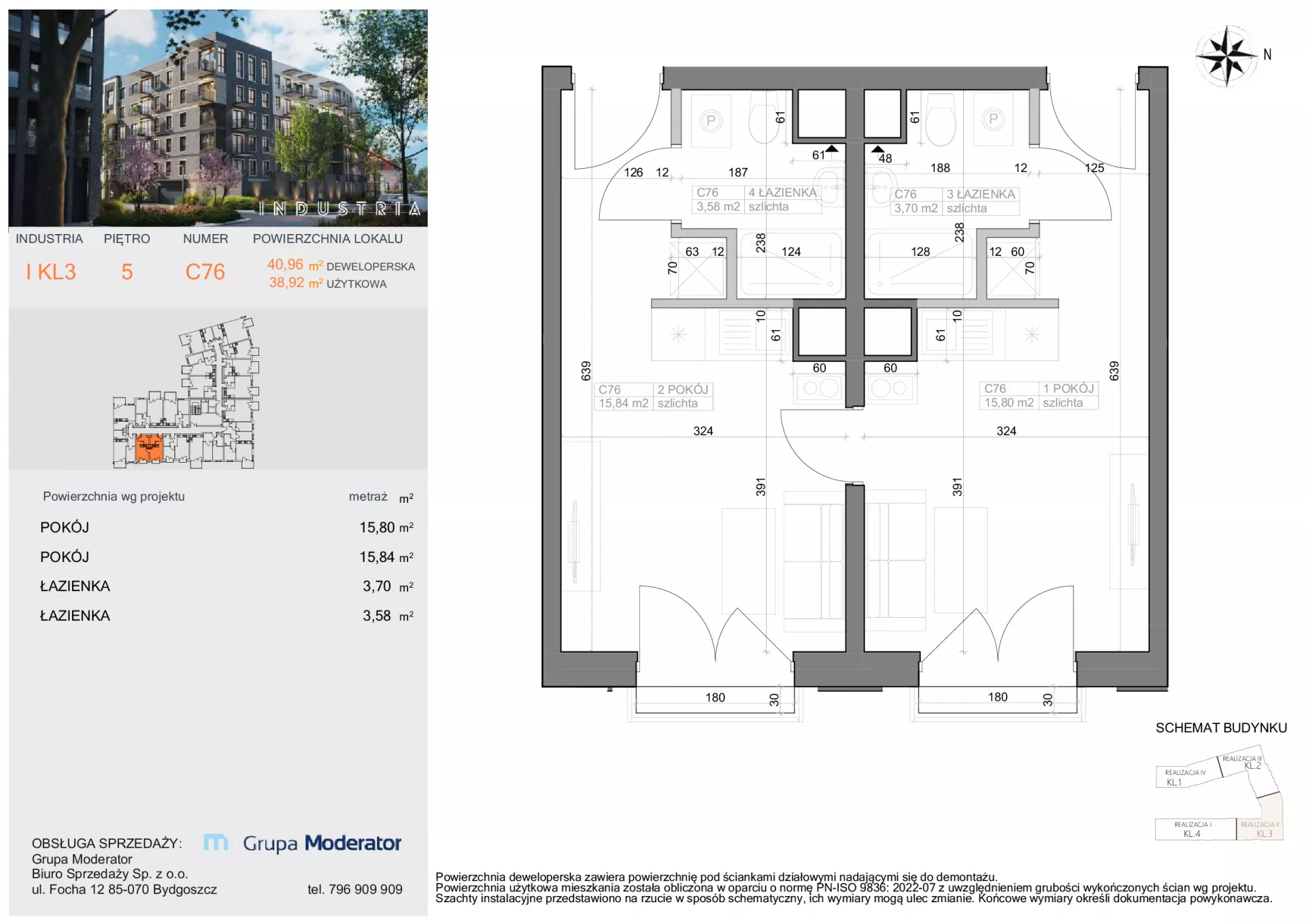 Udogodnienia: Osiedle Industria to loftowy desing, panele fotowoltaiczne, wygoda, bliskość komunikacji miejskiej (pętla tramwajowa i autobusowa), usług i handlu. W pobliżu mieszczą się także placówki edukacyjne. Na osiedlu znajdzie się wspólna przestrzeń rekreacyjna w tym plac zabaw, miejsce dla rowerów i mini warsztat. Przynależności: Mieszkania będą posiadać własne ogródki, tarasy lub balkony. Bezpieczeństwo: Domofon, System Smart Home, monitoring osiedla. Wielkość Projektu: W pierwszym etapie inwestycji powstanie 5 pięciopiętrowych budynków wielorodzinnych, znajdować się w nich będą 89 lokale mieszkalne oraz lokale użytkowe. Garaże: W inwestycji dostępna będzie podziemna hala garażowa. Komunikacja: Pętla komunikacyjna - Tramwaj 85 metrów, Autobus 100 metrów. Dworzec PKP Bydgoszcz Główna 400m. Odległość od Centrum: 2,4 km. Szczegóły: Bawialnia, siłownia, balkony i tarasy wykończone płytkami i gniazdkami elektrycznymi, cichobieżne windy. Panoramiczne okna. Automat do czyszczenia butów. Dyfuzory zapachu w częściach wspólnych. Zielone dziedzińce.