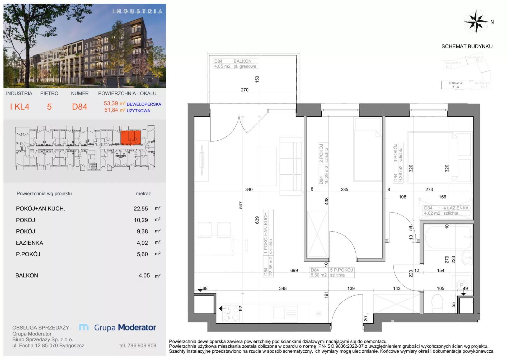 Udogodnienia: Osiedle Industria to loftowy desing, panele fotowoltaiczne, wygoda, bliskość komunikacji miejskiej (pętla tramwajowa i autobusowa), usług i handlu. W pobliżu mieszczą się także placówki edukacyjne. Na osiedlu znajdzie się wspólna przestrzeń rekreacyjna w tym plac zabaw, miejsce dla rowerów i mini warsztat. Przynależności: Mieszkania będą posiadać własne ogródki, tarasy lub balkony. Bezpieczeństwo: Domofon, System Smart Home, monitoring osiedla. Wielkość Projektu: W pierwszym etapie inwestycji powstanie 5 pięciopiętrowych budynków wielorodzinnych, znajdować się w nich będą 89 lokale mieszkalne oraz lokale użytkowe. Garaże: W inwestycji dostępna będzie podziemna hala garażowa. Komunikacja: Pętla komunikacyjna - Tramwaj 85 metrów, Autobus 100 metrów. Dworzec PKP Bydgoszcz Główna 400m. Odległość od Centrum: 2,4 km. Szczegóły: Bawialnia, siłownia, balkony i tarasy wykończone płytkami i gniazdkami elektrycznymi, cichobieżne windy. Panoramiczne okna. Automat do czyszczenia butów. Dyfuzory zapachu w częściach wspólnych. Zielone dziedzińce.