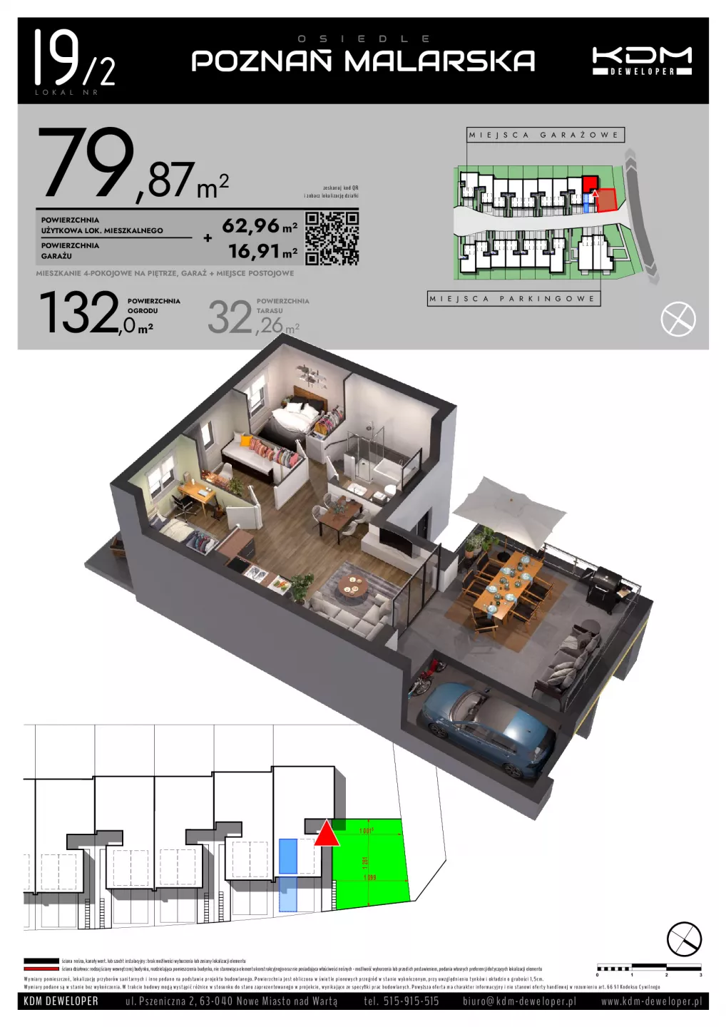 Udogodnienia: Plac zabaw, strefa zieleni, strefa komercyjna, strefa sportowa Przynależności: Każde mieszkanie posiada balkon. Bezpieczeństwo: Drogi wewnętrzne jednokierunkowe, progi zwalniające Wielkość Projektu: Inwestycja składa się z 32 mieszkań w zabudowie szeregowej i 4 mieszkań w zabudowie bliźniaczej. Garaże: W inwestycji będą dostępne miejsca postojowe. Komunikacja: Autobus 1,5 km Odległość od Centrum: Szczytniki 5,5 km; Poznań 16,6 km