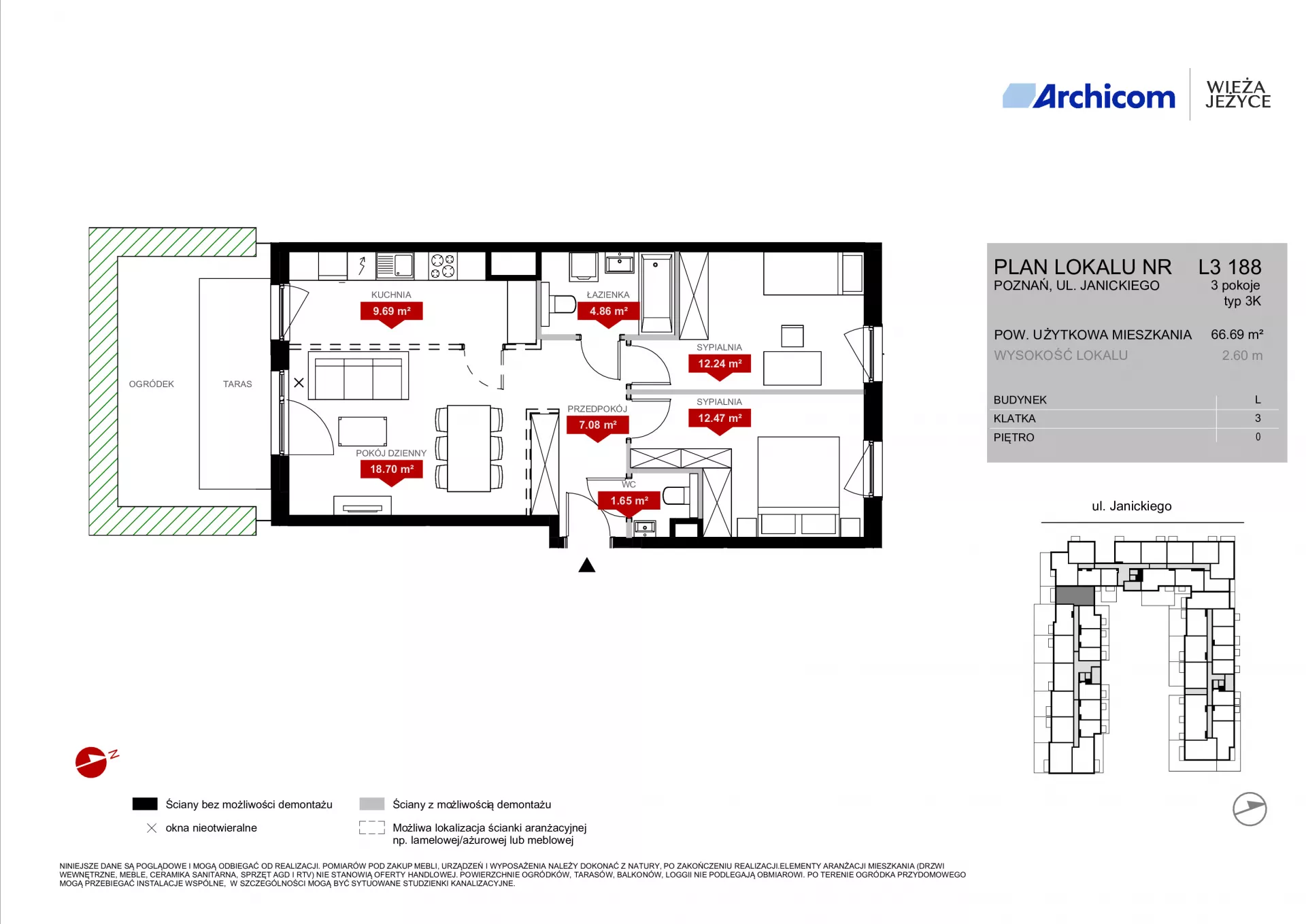 Udogodnienia: nowoczesna inwestycja, wysoki standard wykończenia, winda, smart home, rowerownie, komórki lokatorskie, tereny zielone - Jezioro Rusałka, Park Adama Wodziczki; blisko centrum i komunikacji miejskiej - przystanki autobusowe i przystanki tramwajowe; w pobliżu znajdują się uczelnie, sklepy spożywcze, punkty usługowe i gastronomiczne, obiekty sportowe, paczkomaty Przynależności: balkon, loggia, ogródek, taras Bezpieczeństwo: drzwi antywłamaniowe, wideodomofon, brama garażowa sterowana pilotem Wielkość Projektu: 175 mieszkań Garaże: Na terenie inwestycji powstaną miejsca postojowe w podziemnej hali garażowej Komunikacja: autobus 400 m, tramwaj 350 m Odległość od Centrum: 3,5 km