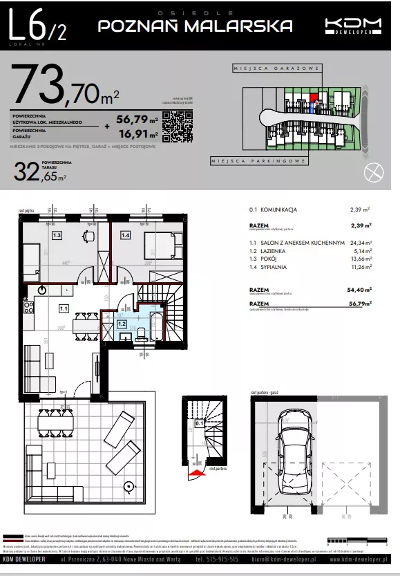 Udogodnienia: Plac zabaw, strefa zieleni, strefa komercyjna, strefa sportowa Przynależności: Każde mieszkanie posiada balkon. Bezpieczeństwo: Drogi wewnętrzne jednokierunkowe, progi zwalniające Wielkość Projektu: Inwestycja składa się z 32 mieszkań w zabudowie szeregowej i 4 mieszkań w zabudowie bliźniaczej. Garaże: W inwestycji będą dostępne miejsca postojowe. Komunikacja: Autobus 1,5 km Odległość od Centrum: Szczytniki 5,5 km; Poznań 16,6 km
