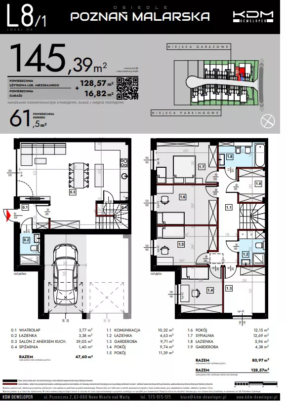Udogodnienia: Plac zabaw, strefa zieleni, strefa komercyjna, strefa sportowa Przynależności: Każde mieszkanie posiada balkon. Bezpieczeństwo: Drogi wewnętrzne jednokierunkowe, progi zwalniające Wielkość Projektu: Inwestycja składa się z 32 mieszkań w zabudowie szeregowej i 4 mieszkań w zabudowie bliźniaczej. Garaże: W inwestycji będą dostępne miejsca postojowe. Komunikacja: Autobus 1,5 km Odległość od Centrum: Szczytniki 5,5 km; Poznań 16,6 km