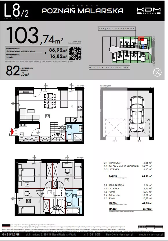 Udogodnienia: Plac zabaw, strefa zieleni, strefa komercyjna, strefa sportowa Przynależności: Każde mieszkanie posiada balkon. Bezpieczeństwo: Drogi wewnętrzne jednokierunkowe, progi zwalniające Wielkość Projektu: Inwestycja składa się z 32 mieszkań w zabudowie szeregowej i 4 mieszkań w zabudowie bliźniaczej. Garaże: W inwestycji będą dostępne miejsca postojowe. Komunikacja: Autobus 1,5 km Odległość od Centrum: Szczytniki 5,5 km; Poznań 16,6 km
