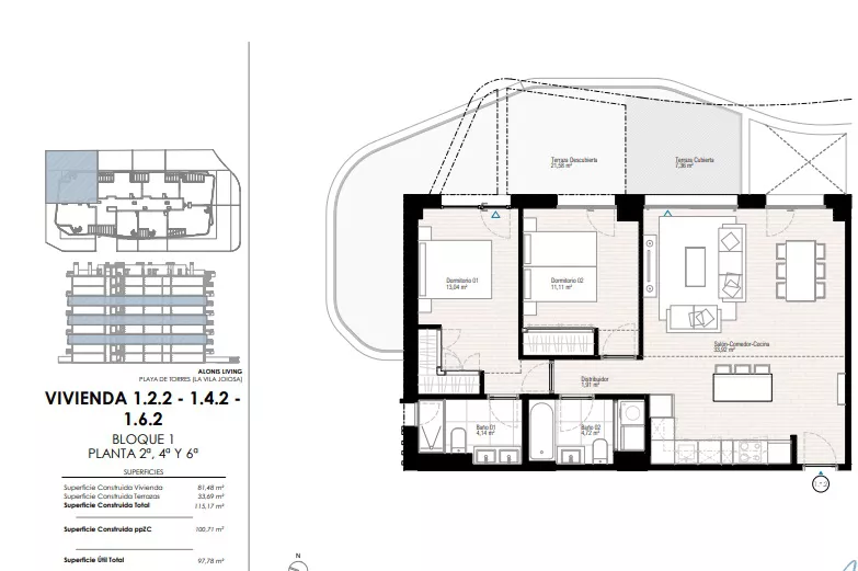 Opis: Alonis Living Playa del Torres to nasza pierwsza inwestycja zlokalizowana w Alicante na Costa Blanca. Znajduje się mniej niż pięć minut spacerem od malowniczej Playa del Torres – uprzywilejowanej okolicy, która pozwala cieszyć się morską bryzą i śródziemnomorskim słońcem każdego dnia. Ten ekskluzywny projekt, wyróżniający się nowoczesną i elegancką architekturą, obejmuje 164 apartamenty i penthouse'y z jedną, dwiema lub trzema sypialniami, przestronnymi tarasami, prywatnymi ogrodami i doskonałymi udogodnieniami, zaprojektowanymi z myślą o osobach poszukujących nowoczesnego, komfortowego i zrównoważonego stylu życia. Udogodnienia: Wśród atrakcji kompleksu znajduje się jedyny w Villajoyosa taras na dachu z basenem typu infinity oraz strefą grillową, oferujący spektakularne widoki na Morze Śródziemne. Dodatkowo dostępne są baseny dla dorosłych i dzieci, podgrzewany tor pływacki umożliwiający całoroczne korzystanie z wody, jacuzzi, siłownia wewnętrzna i zewnętrzna z torem kalistenicznym, pole do mini-golfa, salon gourmet oraz przestrzeń coworkingowa. Przynależności: Plaża Playa del Torres - Ta urokliwa, spokojna plaża z krystalicznie czystą wodą jest idealnym miejscem do relaksu i kąpieli morskich.​ Szlaki turystyczne i ścieżki rowerowe: Okolica oferuje liczne trasy spacerowe i rowerowe wzdłuż wybrzeża, pozwalające na aktywne spędzanie czasu na łonie natury.​ Zabytki historyczne - W pobliżu znajdują się historyczne atrakcje Villajoyosa, takie jak kolorowe domy rybackie oraz starówka, oddalone o około 7 minut jazdy samochodem.​ Restauracje i kawiarnie - W okolicy dostępne są lokale gastronomiczne serwujące lokalne specjały kuchni śródziemnomorskiej.​ Port w Villajoyosa - W odległości około 7 minut jazdy samochodem znajduje się marina, oferująca możliwość korzystania z atrakcji wodnych oraz podziwiania nadmorskiej scenerii. Bezpieczeństwo: Alonis Living Playa del Torres to nowoczesny kompleks mieszkaniowy, który oferuje mieszkańcom wysoki poziom bezpieczeństwa. Oto kluczowe aspekty ochrony: Teren ogrodzony i kontrolowany, Cały kompleks jest ogrodzony, co ogranicza dostęp osób nieupoważnionych i zapewnia prywatność mieszkańcom. Na terenie inwestycji zainstalowano system kamer monitorujących, które działają przez całą dobę, zapewniając kontrolę nad obszarem osiedla. Wejście do budynków i na teren kompleksu jest możliwe tylko dla mieszkańców oraz gości po wcześniejszej weryfikacji. To zapobiega przypadkowemu lub niepożądanemu dostępowi osób trzecich. Kompleks może posiadać ochronę lub concierge, który nadzoruje bezpieczeństwo i reaguje w przypadku jakichkolwiek niepokojących zdarzeń. Wielkość Projektu: 164 apartamenty, 10 penthhouse Garaż: Garaze podziemne i komorka wliczone w cene Komunikacja: Lokalna komunikacja, Tramwaj Odległość od morza: 400m