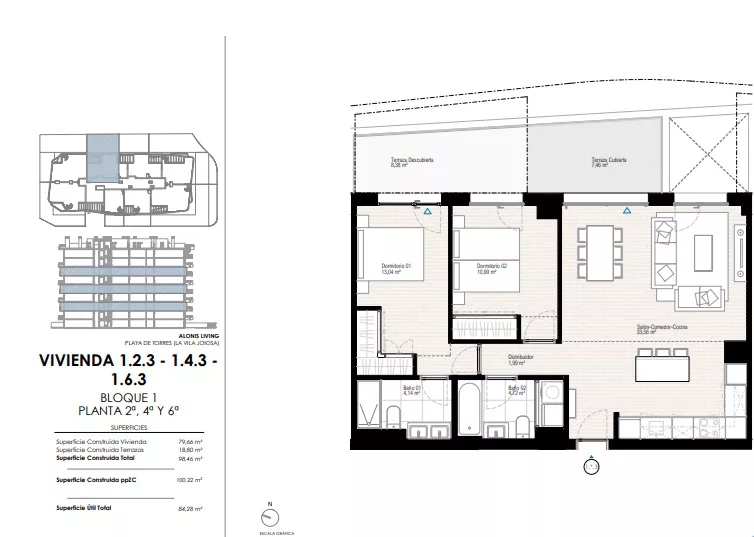 Opis: Alonis Living Playa del Torres to nasza pierwsza inwestycja zlokalizowana w Alicante na Costa Blanca. Znajduje się mniej niż pięć minut spacerem od malowniczej Playa del Torres – uprzywilejowanej okolicy, która pozwala cieszyć się morską bryzą i śródziemnomorskim słońcem każdego dnia. Ten ekskluzywny projekt, wyróżniający się nowoczesną i elegancką architekturą, obejmuje 164 apartamenty i penthouse'y z jedną, dwiema lub trzema sypialniami, przestronnymi tarasami, prywatnymi ogrodami i doskonałymi udogodnieniami, zaprojektowanymi z myślą o osobach poszukujących nowoczesnego, komfortowego i zrównoważonego stylu życia. Udogodnienia: Wśród atrakcji kompleksu znajduje się jedyny w Villajoyosa taras na dachu z basenem typu infinity oraz strefą grillową, oferujący spektakularne widoki na Morze Śródziemne. Dodatkowo dostępne są baseny dla dorosłych i dzieci, podgrzewany tor pływacki umożliwiający całoroczne korzystanie z wody, jacuzzi, siłownia wewnętrzna i zewnętrzna z torem kalistenicznym, pole do mini-golfa, salon gourmet oraz przestrzeń coworkingowa. Przynależności: Plaża Playa del Torres - Ta urokliwa, spokojna plaża z krystalicznie czystą wodą jest idealnym miejscem do relaksu i kąpieli morskich.​ Szlaki turystyczne i ścieżki rowerowe: Okolica oferuje liczne trasy spacerowe i rowerowe wzdłuż wybrzeża, pozwalające na aktywne spędzanie czasu na łonie natury.​ Zabytki historyczne - W pobliżu znajdują się historyczne atrakcje Villajoyosa, takie jak kolorowe domy rybackie oraz starówka, oddalone o około 7 minut jazdy samochodem.​ Restauracje i kawiarnie - W okolicy dostępne są lokale gastronomiczne serwujące lokalne specjały kuchni śródziemnomorskiej.​ Port w Villajoyosa - W odległości około 7 minut jazdy samochodem znajduje się marina, oferująca możliwość korzystania z atrakcji wodnych oraz podziwiania nadmorskiej scenerii. Bezpieczeństwo: Alonis Living Playa del Torres to nowoczesny kompleks mieszkaniowy, który oferuje mieszkańcom wysoki poziom bezpieczeństwa. Oto kluczowe aspekty ochrony: Teren ogrodzony i kontrolowany, Cały kompleks jest ogrodzony, co ogranicza dostęp osób nieupoważnionych i zapewnia prywatność mieszkańcom. Na terenie inwestycji zainstalowano system kamer monitorujących, które działają przez całą dobę, zapewniając kontrolę nad obszarem osiedla. Wejście do budynków i na teren kompleksu jest możliwe tylko dla mieszkańców oraz gości po wcześniejszej weryfikacji. To zapobiega przypadkowemu lub niepożądanemu dostępowi osób trzecich. Kompleks może posiadać ochronę lub concierge, który nadzoruje bezpieczeństwo i reaguje w przypadku jakichkolwiek niepokojących zdarzeń. Wielkość Projektu: 164 apartamenty, 10 penthhouse Garaż: Garaze podziemne i komorka wliczone w cene Komunikacja: Lokalna komunikacja, Tramwaj Odległość od morza: 400m