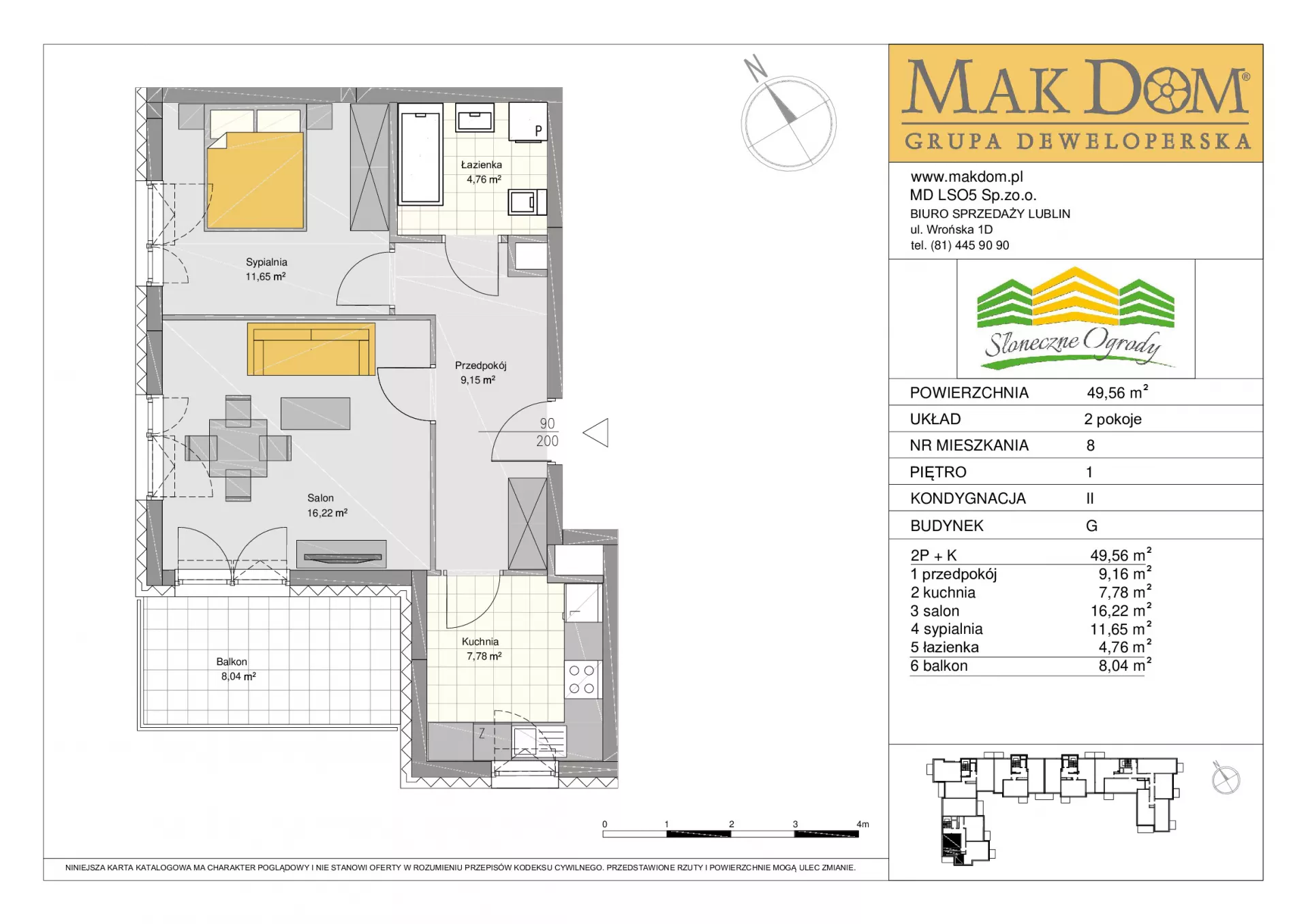 Udogodnienia: W okolicy inwestycji znajdują się punkty handlowo usługowe, placówki edukacyjne, obiekty rekreacyjne, sakralne oraz obiekty użyteczności publicznej. Przynależności: Każde mieszkanie posiada balkon lub taras. Bezpieczeństwo: Domofon, drzwi antywłamaniowe. Wielkość Projektu: Inwestycja składa się z budynku wielorodzinnego, w którym łącznie znajduje się 182 mieszkań. Garaże: W inwestycji dostępne będą miejsca postojowe podziemne. Komunikacja: Autobus 400 metrów. Odległość od Centrum: 2,4 km.