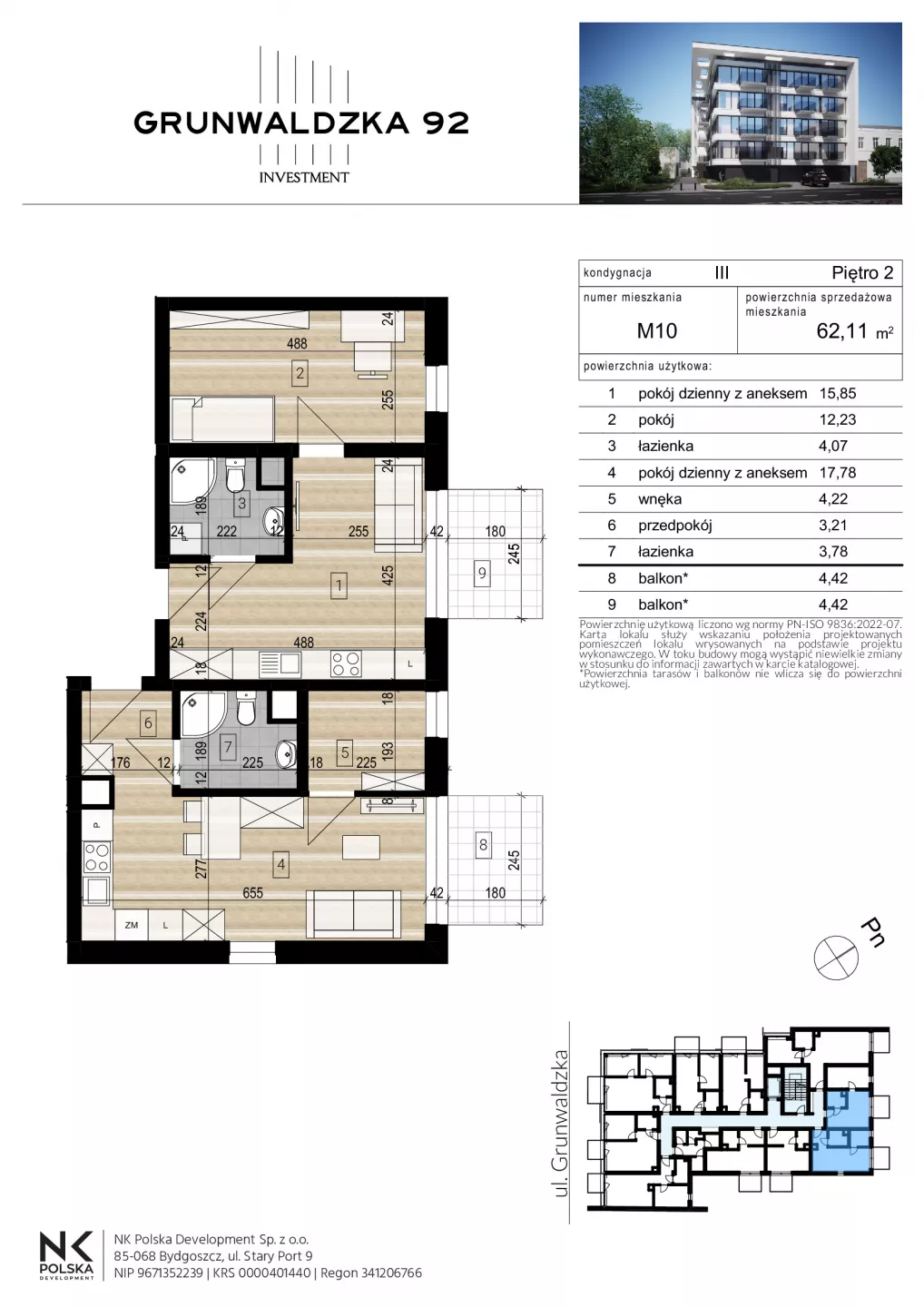 Udogodnienia: Nowoczesna architektura, winda cichobieżna, w ofercie mieszkania dwulokalowe. Przynależności: Komórki lokatorskie na kondygnacjach mieszkaniowych, miejsca postojowe podziemne. Bezpieczeństwo: Wideodomofony, panoramiczne okna trzyszybowe z roletami Schuco; teren ogrodzony i monitorowany. Garaże: W inwestycji znajduje się hala garażowa dla mieszkańców osiedla. Odległość od Centrum: Inwestycja znajduje się w Centrum i Starego Miasta, obwodnicy, bliskość Biznes Parku . Szczegóły: SPRZEDAŻ ZDALNA, CESJA, czynsz 11.50zł/m.kw.