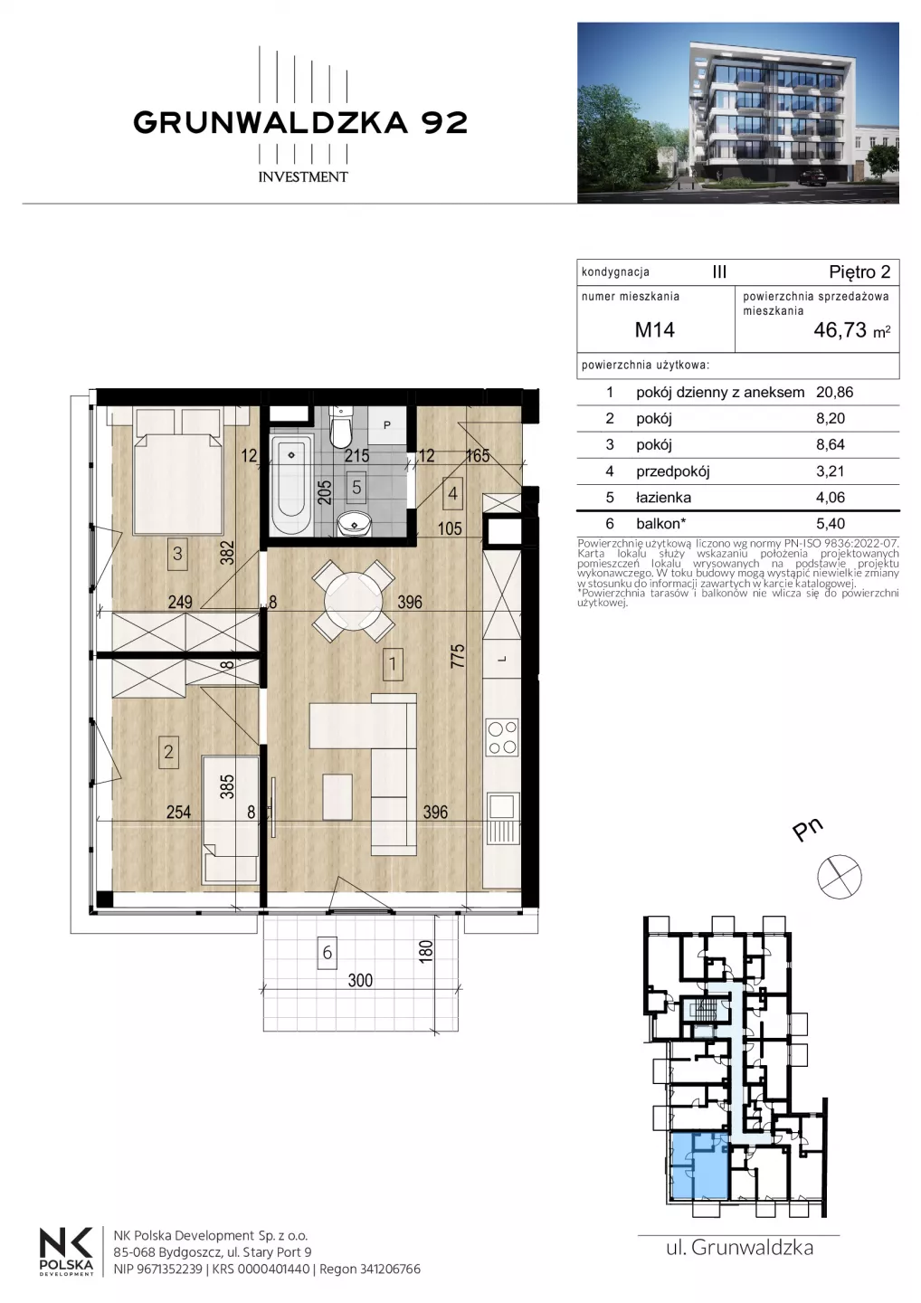 Udogodnienia: Nowoczesna architektura, winda cichobieżna, w ofercie mieszkania dwulokalowe. Przynależności: Komórki lokatorskie na kondygnacjach mieszkaniowych, miejsca postojowe podziemne. Bezpieczeństwo: Wideodomofony, panoramiczne okna trzyszybowe z roletami Schuco; teren ogrodzony i monitorowany. Garaże: W inwestycji znajduje się hala garażowa dla mieszkańców osiedla. Odległość od Centrum: Inwestycja znajduje się w Centrum i Starego Miasta, obwodnicy, bliskość Biznes Parku . Szczegóły: SPRZEDAŻ ZDALNA, CESJA, czynsz 11.50zł/m.kw.