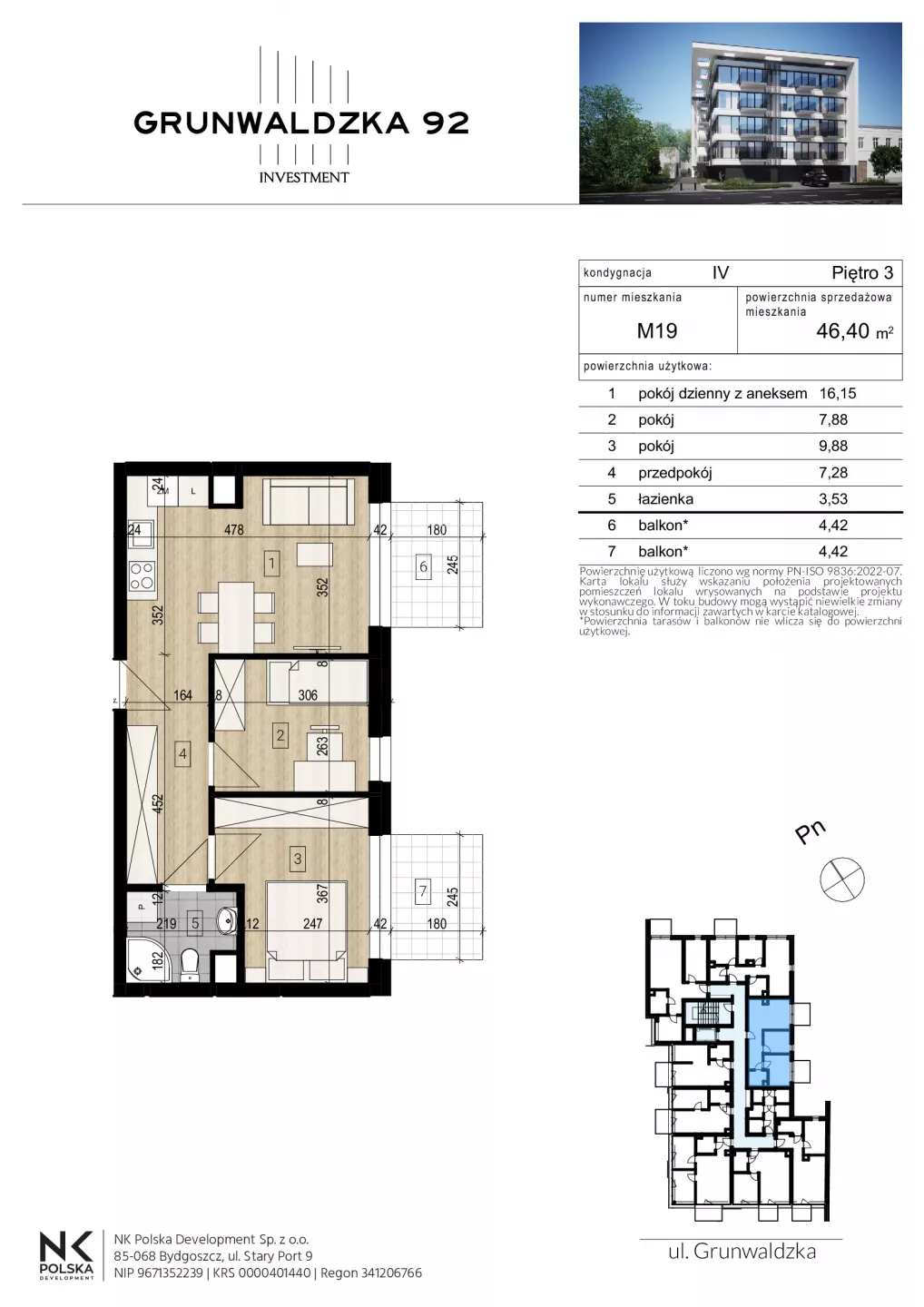 Udogodnienia: Nowoczesna architektura, winda cichobieżna, w ofercie mieszkania dwulokalowe. Przynależności: Komórki lokatorskie na kondygnacjach mieszkaniowych, miejsca postojowe podziemne. Bezpieczeństwo: Wideodomofony, panoramiczne okna trzyszybowe z roletami Schuco; teren ogrodzony i monitorowany. Garaże: W inwestycji znajduje się hala garażowa dla mieszkańców osiedla. Odległość od Centrum: Inwestycja znajduje się w Centrum i Starego Miasta, obwodnicy, bliskość Biznes Parku . Szczegóły: SPRZEDAŻ ZDALNA, CESJA, czynsz 11.50zł/m.kw.