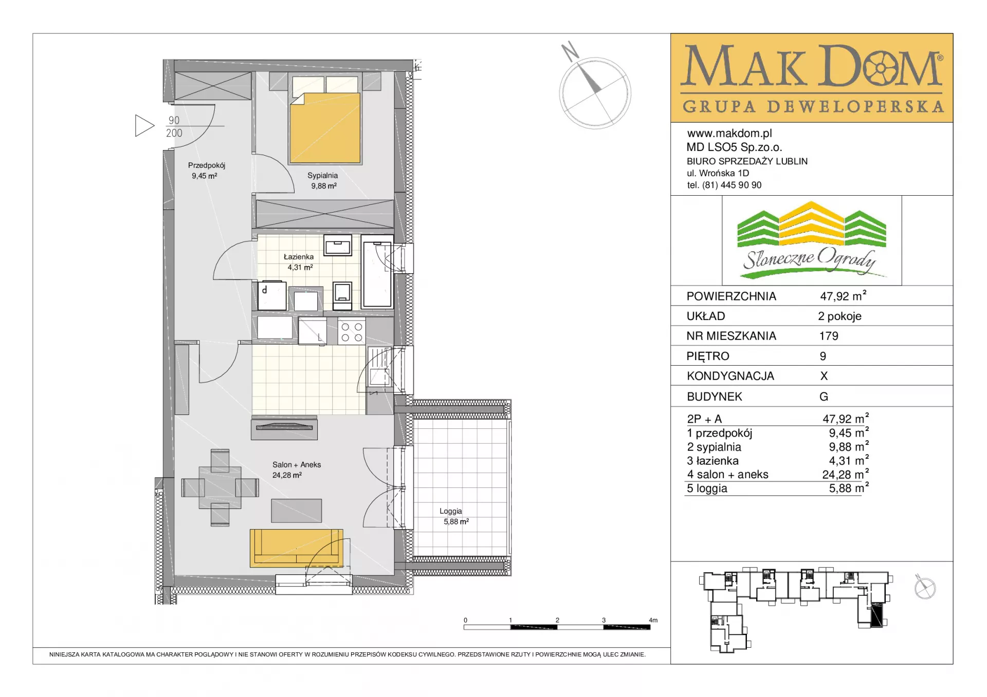 Udogodnienia: W okolicy inwestycji znajdują się punkty handlowo usługowe, placówki edukacyjne, obiekty rekreacyjne, sakralne oraz obiekty użyteczności publicznej. Przynależności: Każde mieszkanie posiada balkon lub taras. Bezpieczeństwo: Domofon, drzwi antywłamaniowe. Wielkość Projektu: Inwestycja składa się z budynku wielorodzinnego, w którym łącznie znajduje się 182 mieszkań. Garaże: W inwestycji dostępne będą miejsca postojowe podziemne. Komunikacja: Autobus 400 metrów. Odległość od Centrum: 2,4 km.