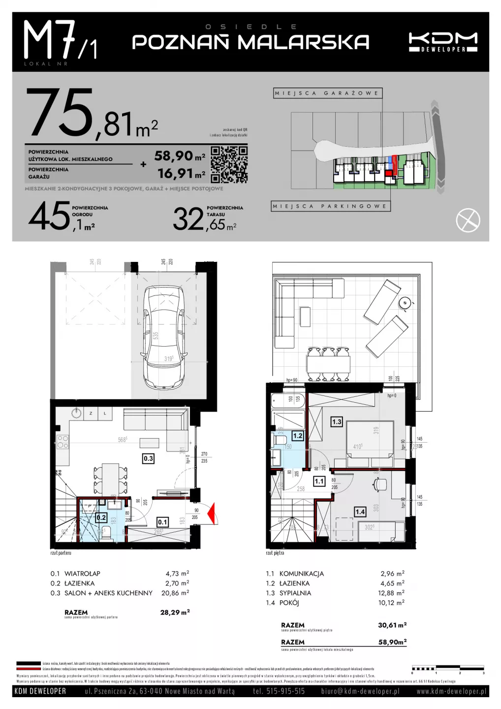 Udogodnienia: Plac zabaw, strefa zieleni, strefa komercyjna, strefa sportowa Przynależności: Każde mieszkanie posiada balkon. Bezpieczeństwo: Drogi wewnętrzne jednokierunkowe, progi zwalniające Wielkość Projektu: Inwestycja składa się z 18 mieszkań w zabudowie szeregowej i 4 mieszkań w zabudowie bliźniaczej. Garaże: W inwestycji będą dostępne miejsca postojowe. Komunikacja: Autobus 1,5 km Odległość od Centrum: Szczytniki 5,5 km; Poznań 16,6 km