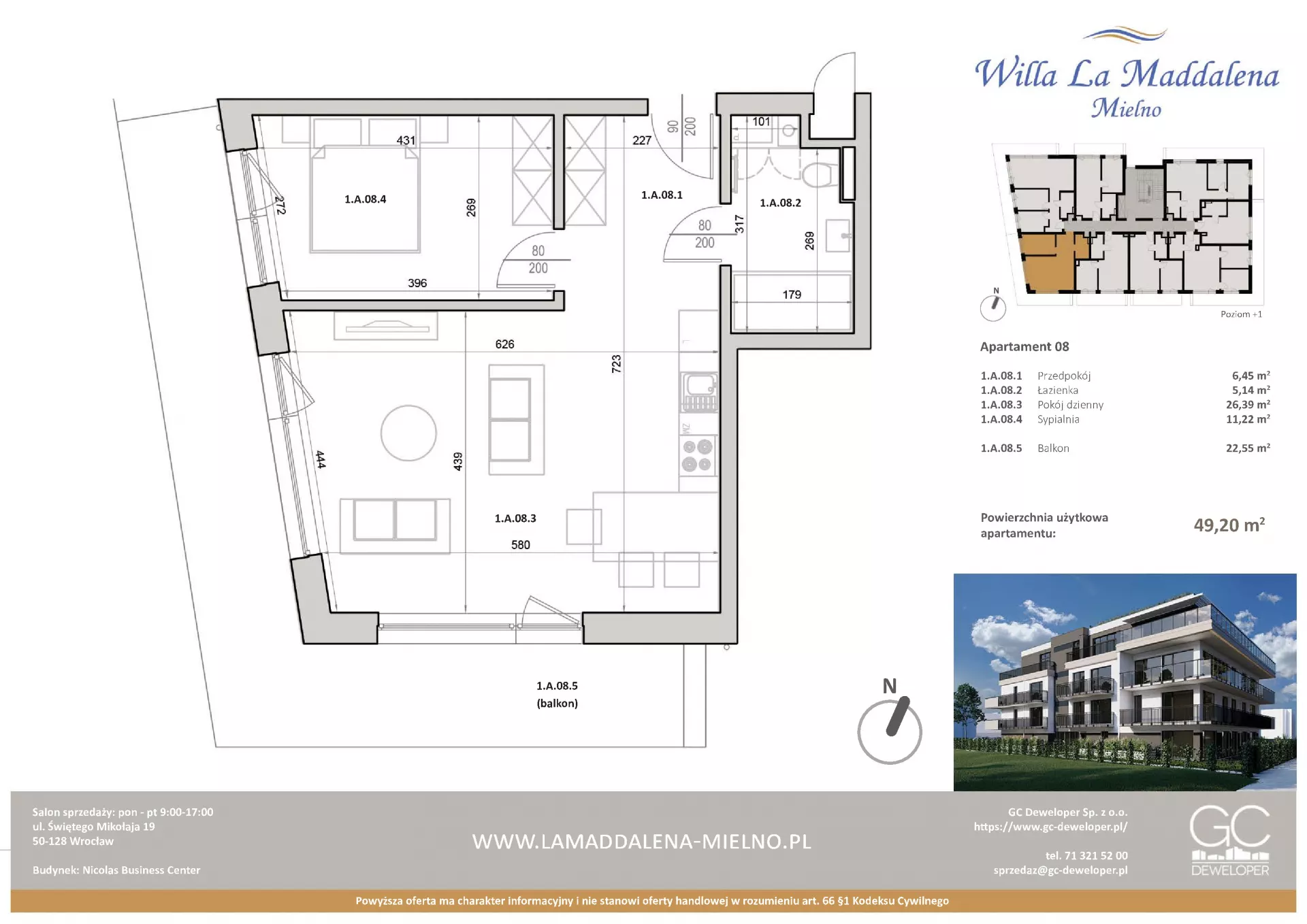 Udogodnienia: cicha i spokojna okolica, tereny zielone, nowoczesna architektura, w pobliżu plaża i jezioro, dogodny dostęp do miejskiej infrastruktury Przynależności: taras, balkon, miejsce postojowe Bezpieczeństwo: monitoring, wideodomofon Wielkość Projektu: 19 apartamentów Garaże: Deweloper przewidział miejsca postojowe naziemne oraz garażowe dla mieszkańców inwestycji. Komunikacja: autobus - 1,6 km Odległość od Centrum: 1,3 km