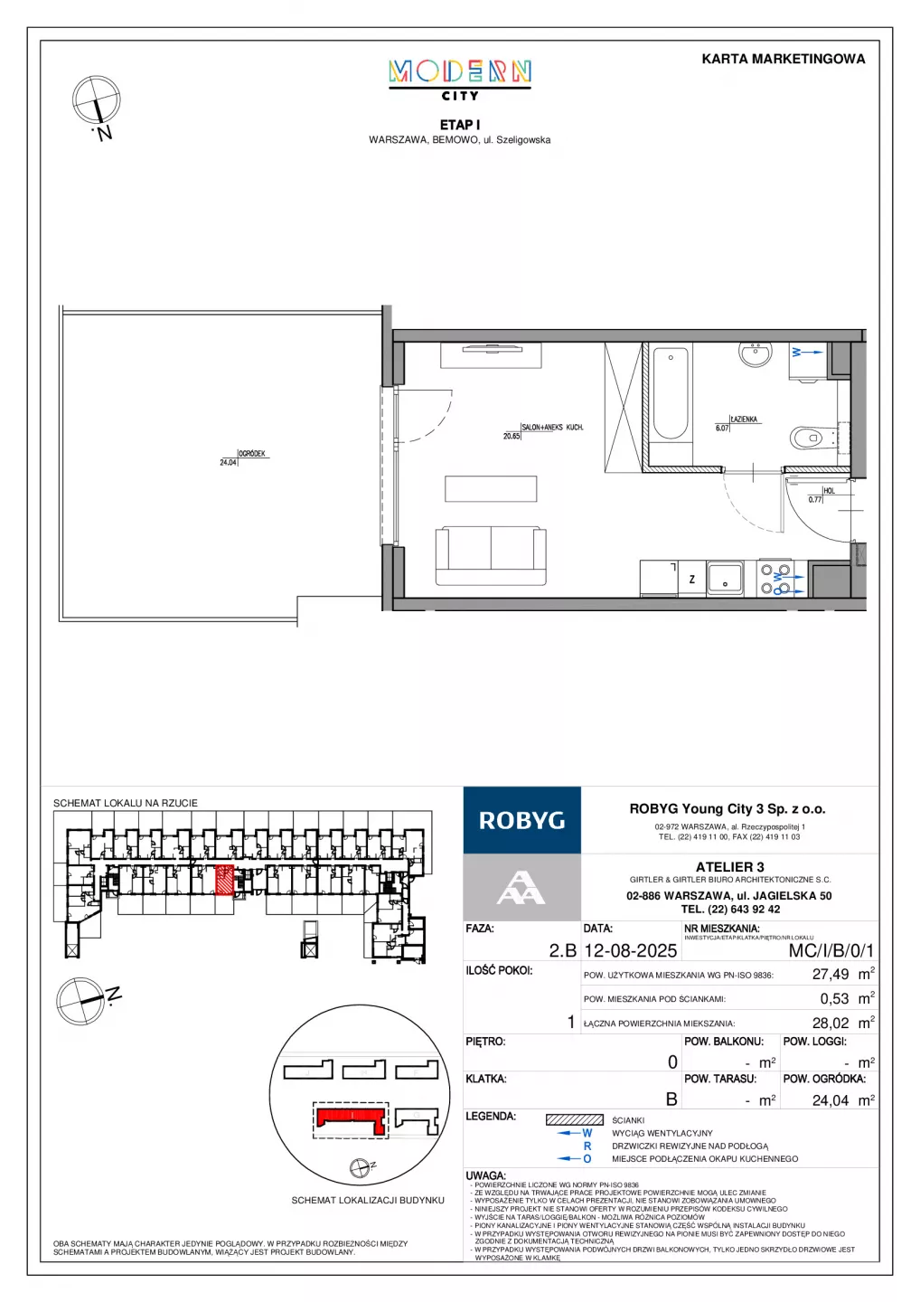 Bemowo to innowacyjna, dynamicznie rozwijająca się dzielnica, chętnie wybierana na miejsce do życia. Ludzi przyciąga tu bogata oferta usług społecznych i kulturalnych, piękna zieleń, nowoczesne rozwiązania oraz doskonałe połączenia komunikacyjne. Właśnie dlatego od lat tworzymy tu nowoczesne, przyjazne mieszkańcom osiedla. W okolicy ulic Batalionów Chłopskich i Szeligowskiej wybudowaliśmy już 1500 mieszkań i byliśmy pionierem zagospodarowania tej części dzielnicy. Obecnie realizujemy projekt Modern City, w ramach którego powstanie łącznie ok. 800 funkcjonalnych apartamentów i mieszkań na sprzedaż. Do mieszkań przynależeć będą duże balkony, loggie lub ogródki. Cechą charakterystyczną osiedla jest ciekawa, modernistyczna architektura, eleganckie białe elewacje z elementami klinkieru, części wspólne indywidualnie zaprojektowane z materiałów wysokiej jakości. Wewnątrz osiedla powstanie rozległy park z elementami małej architektury, ścieżką rowerową, placem zabaw, strefą relaksu i siłownią plenerową wyposażoną w urządzenia do street workoutu. Każde mieszkanie, bez dodatkowych opłat, zostanie wyposażone w system Smart House - inteligentny dom. Komórka lokatorska możliwa od 39m2