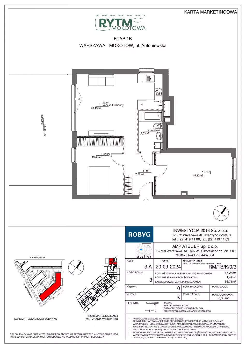 Nasza nowa inwestycja Rytm Mokotowa - usytuowana jest w malowniczym zakątku Mokotowa, u zbiegu ulic Antoniewskiej i Piramowicza. W ramach projektu wybudujemy nowoczesne, otoczone zielenią, osiedle w wysokim standardzie, bogate w wiele udogodnień i innowacji wspierających ochronę środowiska. Jego wyróżnikiem będzie indywidualnie zaprojektowany mural wykonany farbami antysmogowymi. Na osiedlu nie zabraknie stacji ładowania samochodów elektrycznych i stojaków na rowery. W mieszkaniach na parterze zostaną zainstalowane również rolety przeciwsłoneczne. Do dyspozycji mieszkańców oddamy również strefę fitness, pokój jogi, place zabaw dla dzieci i klub malucha. Zapraszamy Państwa do zapoznania się z naszą nową inwestycją i zachęcamy do zakupu mieszkania.