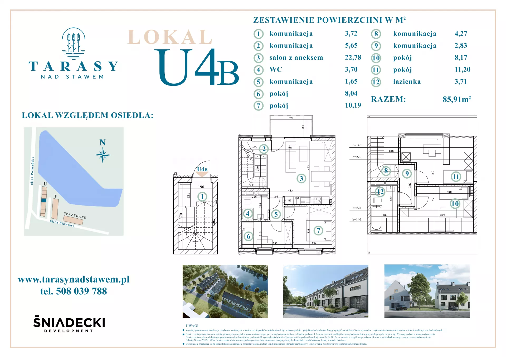 Udogodnienia: W okolicy inwestycji znajdują się punkty usługowe, placówki edukacyjne, park, teren rekreacyjny. Przynależności: Każde mieszkanie posiada ogród lub taras. Bezpieczeństwo: Rolety elektryczne na parterze. Wielkość Projektu: Inwestycja składa się z 20 mieszkań jedno- i dwukondygnacyjnych, w zabudowie szeregowej. Garaże: W inwestycji będą dostępne miejsca postojowe naziemne. Komunikacja: Autobus 300 metrów, 1 km do stacji PKP Odległość od Centrum: 15,7 km - Poznań
