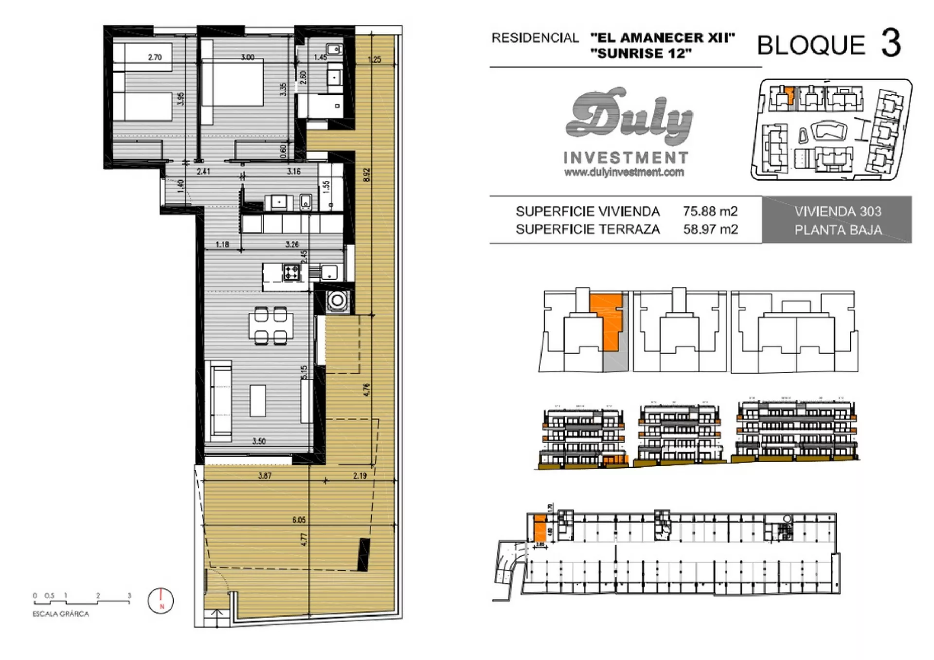 OPIS: Inwestycja Amanecer XII to obiźniacze siedle z Amanecer XI, obejmuje 112 apartamentów z dwoma sypialniami i dwoma łazienkami, ze słonecznymi tarasami, wspólnym basenem, siłownią, sauną, jacuzzi, placem zabaw dla dzieci. Inwestycja zlokalizowana jest w niewielkiej odległości od morza i znanych w Europie pół golfowych. Udogodnienia: Kuchnia umeblowan i wyposażona, łazienki w pełni wyposażone , klimatyzacja (ciepło/zimno), kompletny pakiet mebli, małe AGD, Smart TV 43 LED HD WIFI Przynależności: Basen, siłownia, sauna, strefa dla dzieci, Bezpieczeństwo: Zamknięte osiedle Wielkość Projektu: 112 apartamentów Garaże: miejsce w hali parkingowej wraz z komórką lokatorską Komunikacja: 45 km do lotniska Alicante Odległość od morza: 3 km