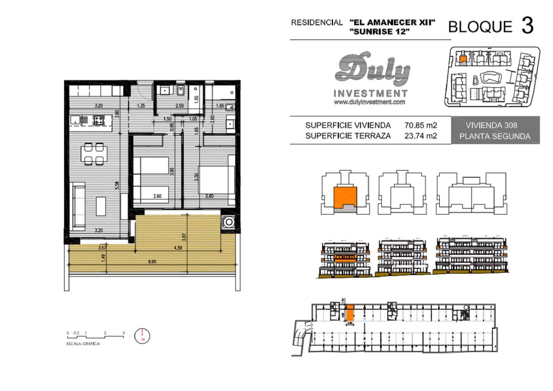 OPIS: Inwestycja Amanecer XII to obiźniacze siedle z Amanecer XI, obejmuje 112 apartamentów z dwoma sypialniami i dwoma łazienkami, ze słonecznymi tarasami, wspólnym basenem, siłownią, sauną, jacuzzi, placem zabaw dla dzieci. Inwestycja zlokalizowana jest w niewielkiej odległości od morza i znanych w Europie pół golfowych. Udogodnienia: Kuchnia umeblowan i wyposażona, łazienki w pełni wyposażone , klimatyzacja (ciepło/zimno), kompletny pakiet mebli, małe AGD, Smart TV 43 LED HD WIFI Przynależności: Basen, siłownia, sauna, strefa dla dzieci, Bezpieczeństwo: Zamknięte osiedle Wielkość Projektu: 112 apartamentów Garaże: miejsce w hali parkingowej wraz z komórką lokatorską Komunikacja: 45 km do lotniska Alicante Odległość od morza: 3 km