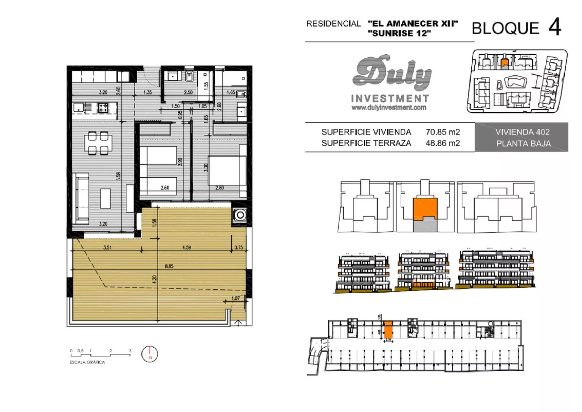 OPIS: Inwestycja Amanecer XII to obiźniacze siedle z Amanecer XI, obejmuje 112 apartamentów z dwoma sypialniami i dwoma łazienkami, ze słonecznymi tarasami, wspólnym basenem, siłownią, sauną, jacuzzi, placem zabaw dla dzieci. Inwestycja zlokalizowana jest w niewielkiej odległości od morza i znanych w Europie pół golfowych. Udogodnienia: Kuchnia umeblowan i wyposażona, łazienki w pełni wyposażone , klimatyzacja (ciepło/zimno), kompletny pakiet mebli, małe AGD, Smart TV 43 LED HD WIFI Przynależności: Basen, siłownia, sauna, strefa dla dzieci, Bezpieczeństwo: Zamknięte osiedle Wielkość Projektu: 112 apartamentów Garaże: miejsce w hali parkingowej wraz z komórką lokatorską Komunikacja: 45 km do lotniska Alicante Odległość od morza: 3 km