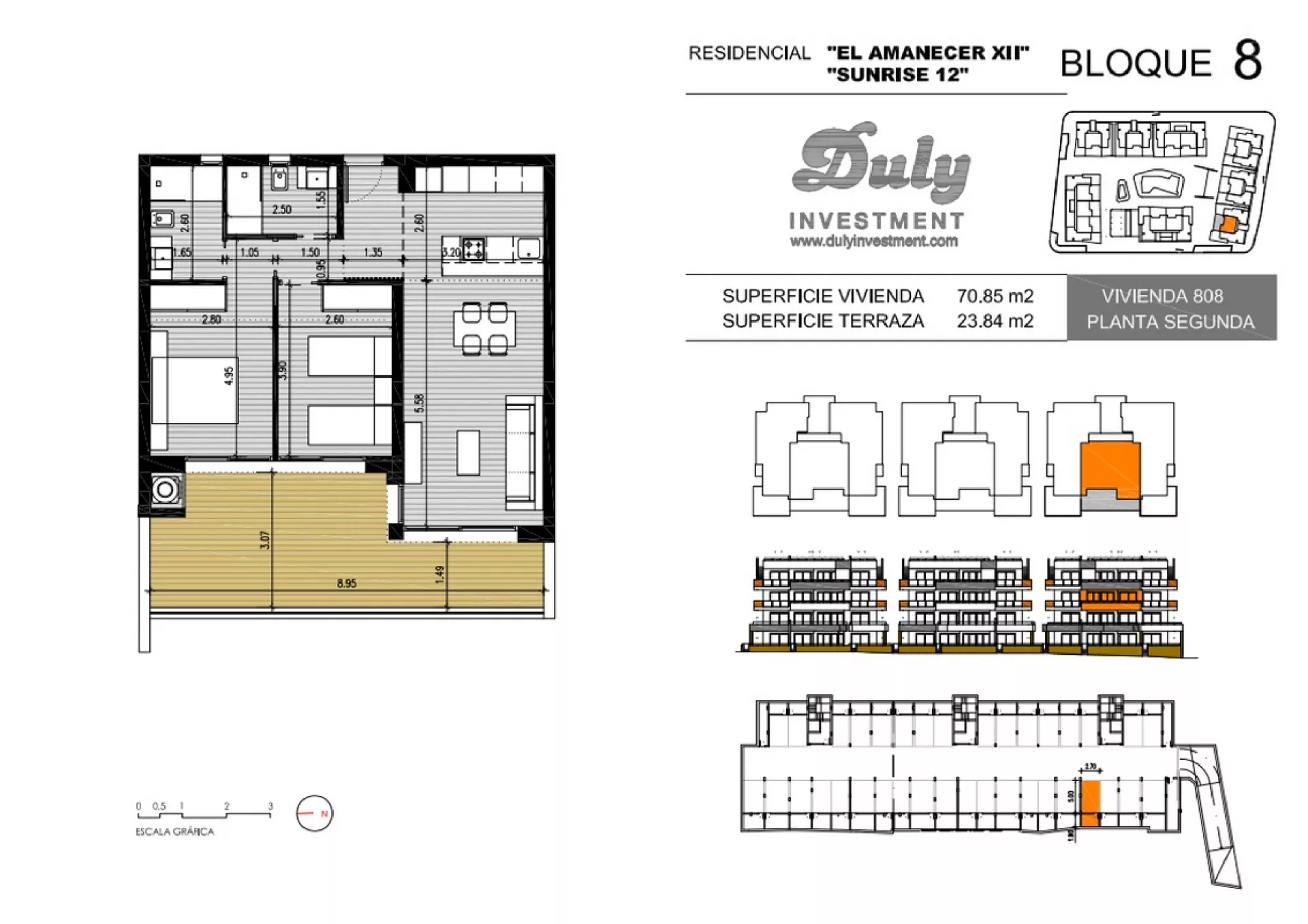 OPIS: Inwestycja Amanecer XII to obiźniacze siedle z Amanecer XI, obejmuje 112 apartamentów z dwoma sypialniami i dwoma łazienkami, ze słonecznymi tarasami, wspólnym basenem, siłownią, sauną, jacuzzi, placem zabaw dla dzieci. Inwestycja zlokalizowana jest w niewielkiej odległości od morza i znanych w Europie pół golfowych. Udogodnienia: Kuchnia umeblowan i wyposażona, łazienki w pełni wyposażone , klimatyzacja (ciepło/zimno), kompletny pakiet mebli, małe AGD, Smart TV 43 LED HD WIFI Przynależności: Basen, siłownia, sauna, strefa dla dzieci, Bezpieczeństwo: Zamknięte osiedle Wielkość Projektu: 112 apartamentów Garaże: miejsce w hali parkingowej wraz z komórką lokatorską Komunikacja: 45 km do lotniska Alicante Odległość od morza: 3 km