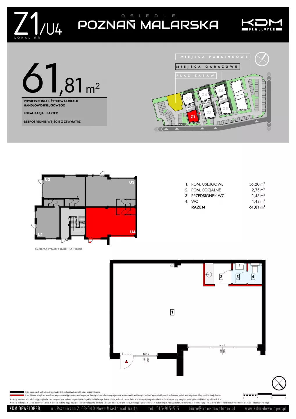 Udogodnienia: Plac zabaw, strefa zieleni, strefa komercyjna, strefa sportowa Bezpieczeństwo: Drogi wewnętrzne jednokierunkowe, progi zwalniające Wielkość Projektu: 18 lokali usługowych Garaże: W inwestycji będą dostępne miejsca postojowe. Komunikacja: Autobus 1,5 km Odległość od Centrum: Szczytniki 5,5 km; Poznań 16,6 km